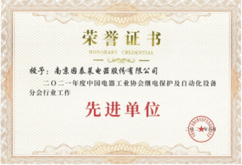 南京因泰萊獲評中國電器工業(yè)協(xié)會繼電保護(hù)及自動化設(shè)備分會工作先進(jìn)單位